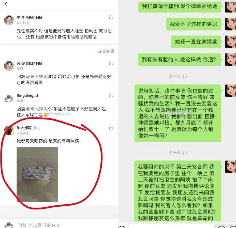 Buns’ request to open a case was apparently rejected as Chen’s story has already been investigated by the police. However, Chen argued that Buns was in the wrong as the netizen had apparently uploaded her nude photos earlier without covering her private parts and face. Additionally, Chen posted a photo of medicine found in Buns’ home, saying: “She takes medicine everyday, she really is mentally ill.”