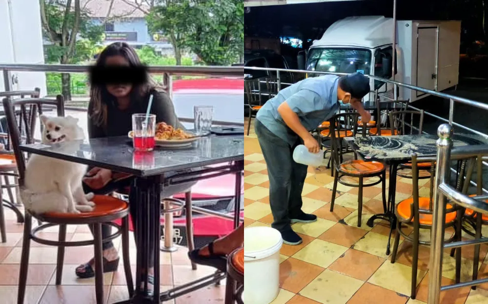 In a now-deleted post, a Facebook user shared a photo of two women dining at a mamak restaurant with a pet dog, shown sitting on a chair while the two women were having a meal. The incident reportedly took place last weekend in Bukit Beruntung, Selangor.