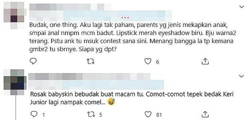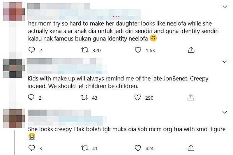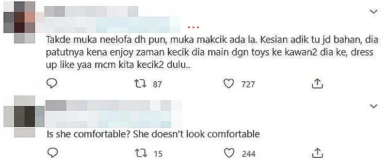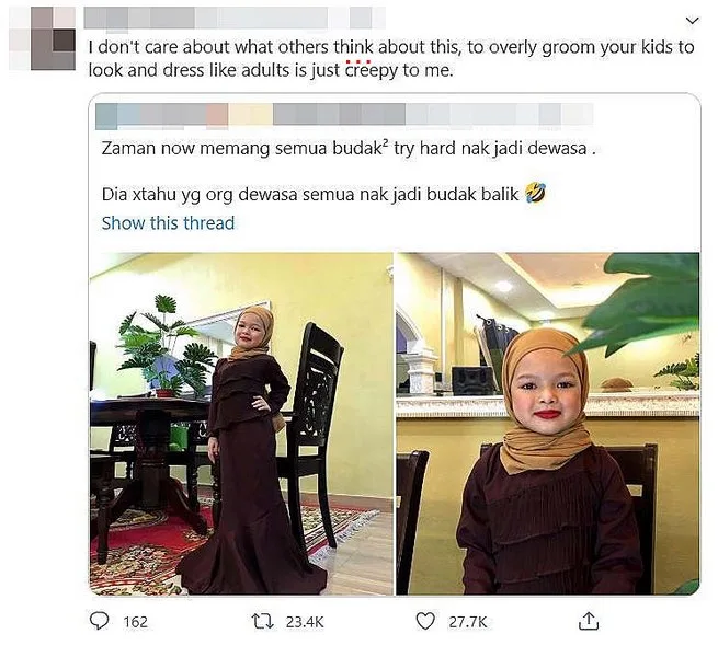 One Twitter user wrote, “I don’t care about what others think about this, to overly groom your kids to look and dress like adults is just creepy to me.” Others agreed with his sentiment. In this case, many criticised Naura’s parents for trying too hard to gain people’s attention.