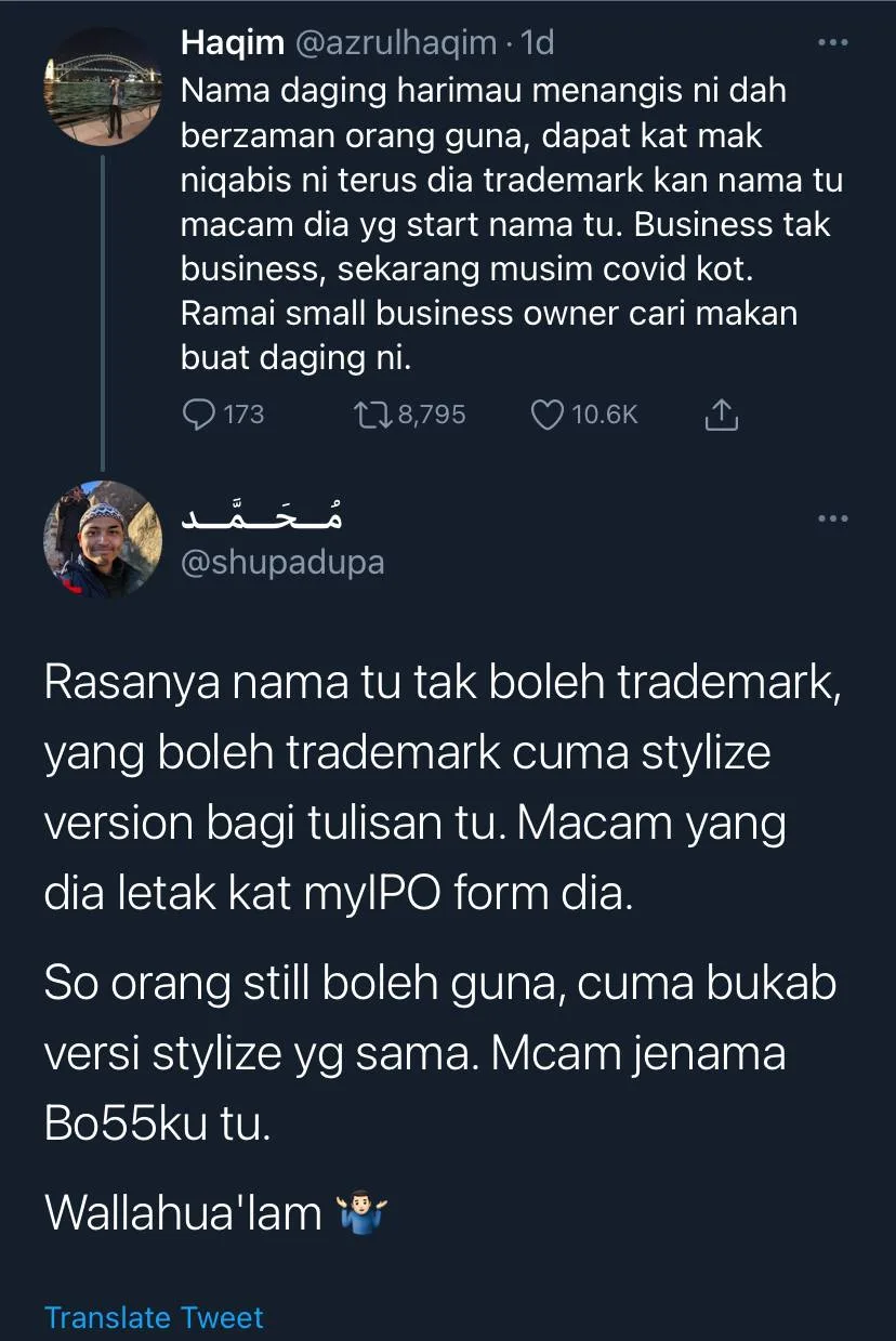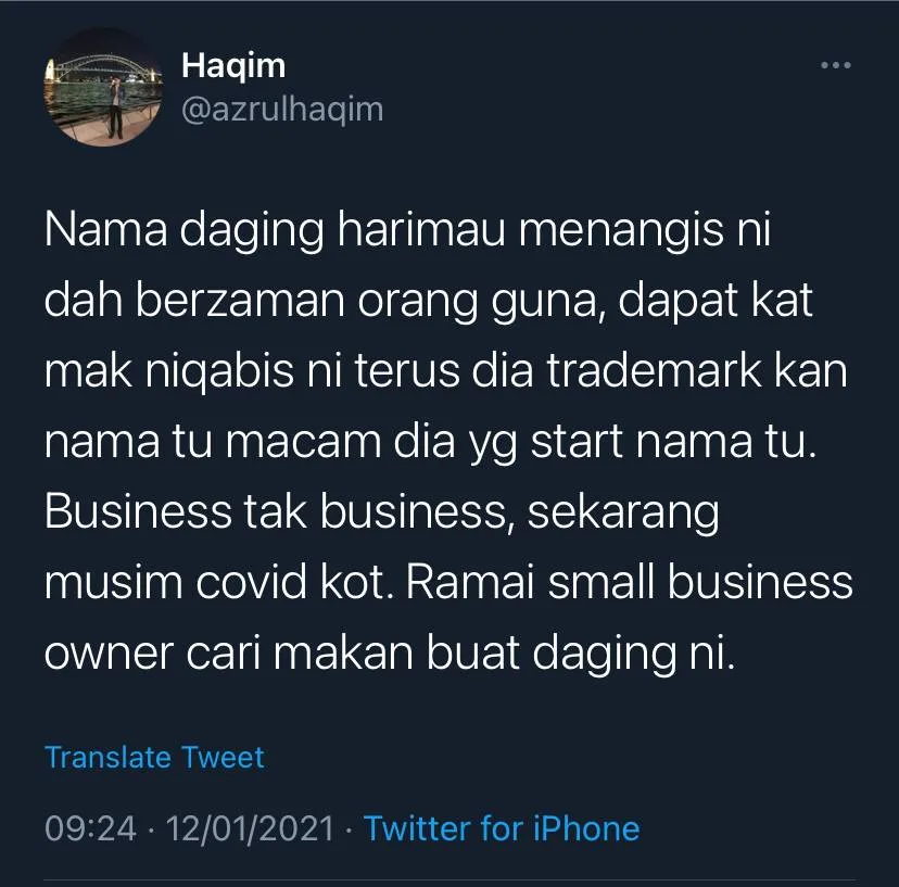 In case you missed it, local fans have been fussing over the issue of “Daging Harimau Menangis” product’s trademark application.