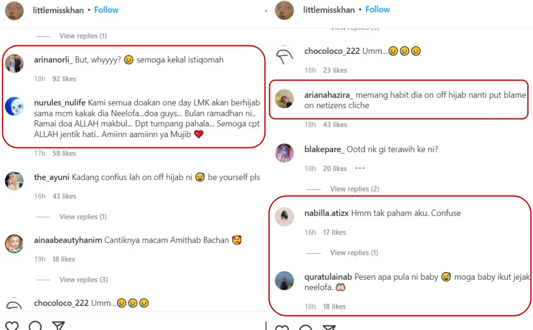 Many netizens were left bewildered by the 22-year-old’s recent image as shown in her IG post. Scrolling through the comments, most of them reprimanded Ameera for choosing to wear her hijab on and off. “I thought you were already wearing hijab, am I right? But yeah 🙂” IG user @cupids.my questioned. For those in the dark, the young entrepreneur has been donning the tudung since March of last year.