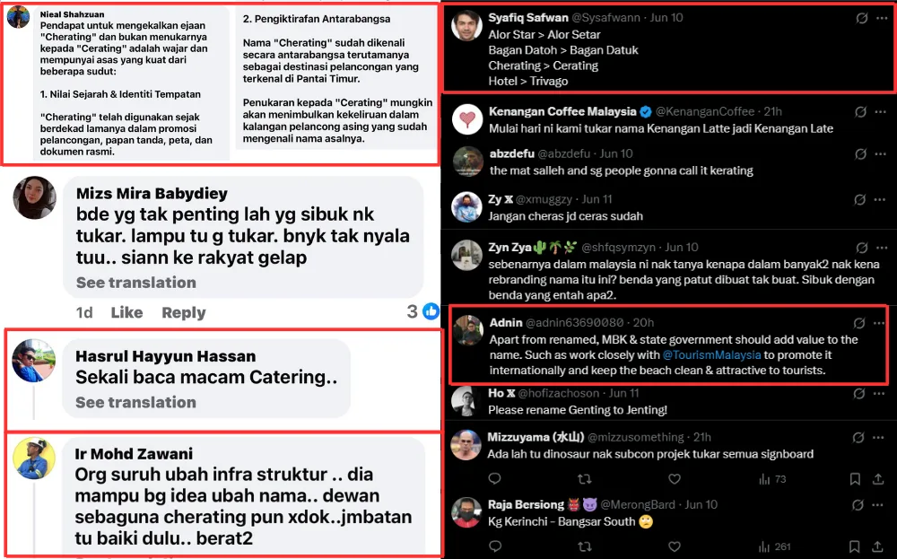 Another user quipped, pairing the name change with government efforts. Twitter user @/adnin63690080 comments, “Apart from [the] rename, MBK and the state government should add value to the name. Such as [to] work closely with Tourism Malaysia to promote it internationally and keep the beach clean and attractive to tourists”.
