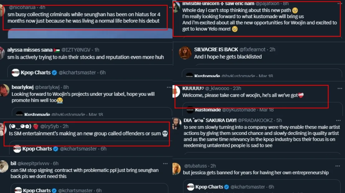 As seen in the screenshots above, netizens criticised the company for signing Woojin to their sub-label, even bringing up their other idols who were also hit with sexual assault allegations. Others also accused the label of favouritism and mistreating their artists by giving priority to one over the other. Of course, there were also fans who defended Woojin and showed support for his upcoming major comeback.