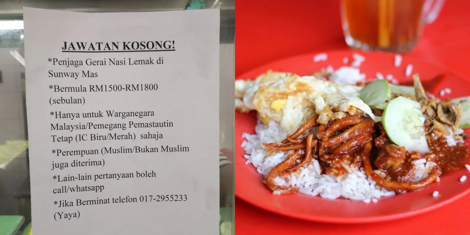 Recently, a picture of a job vacancy at a Nasi Lemak stall offering a RM1800 wage per month, has stirred some discussion among netizens comparing it to minimum wage at other companies.
