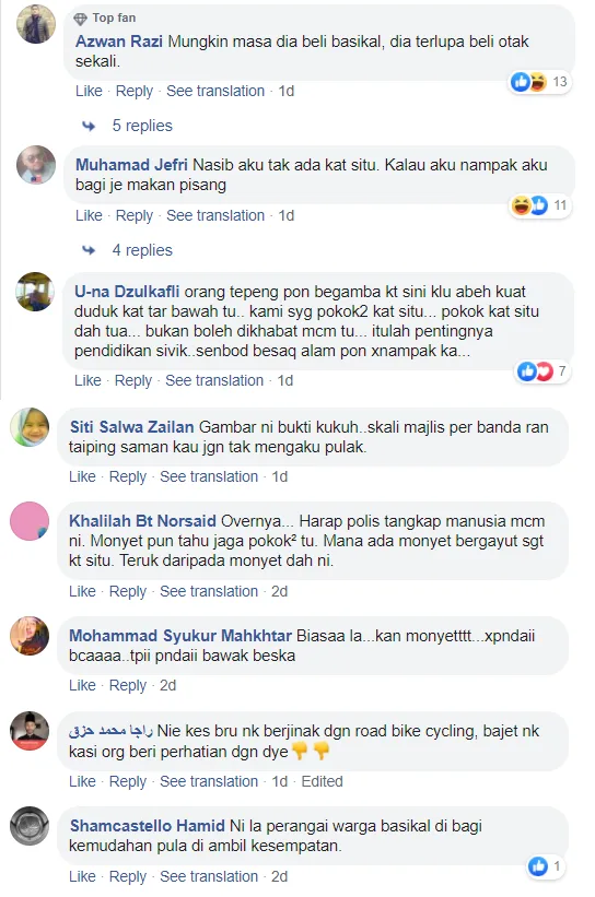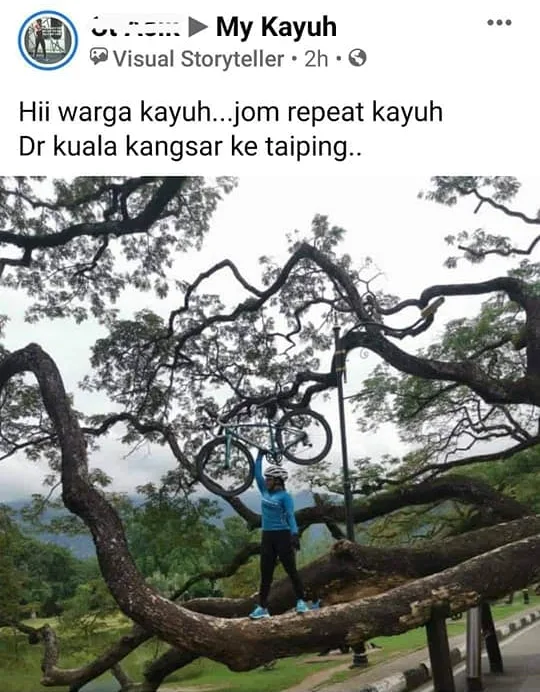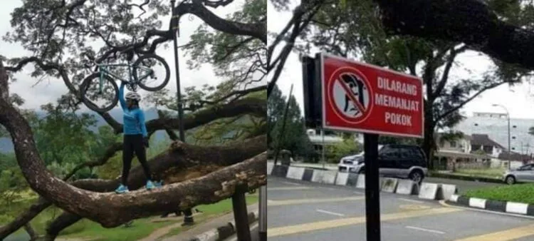 It seems like the cyclist in the photo didn’t think much about the consequences when she was posing atop of the tree. The issue went viral after a few Perak social media publications took to their Facebook page to question the lady’s stunt.