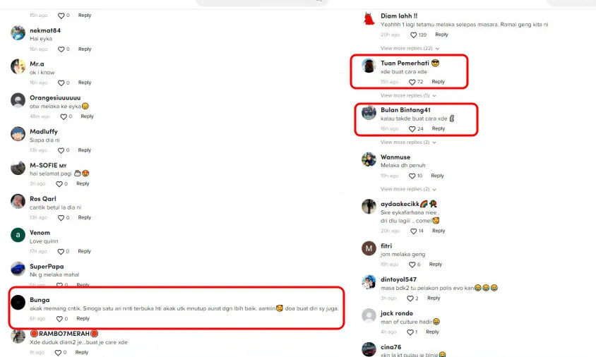 One netizen left a comment on Eyka’s video, saying, “If you don’t have (large boobs), act like you don’t have (them).” Not only that, but another netizen on Facebook also compared her chest to a golf course! Aside from the negative remarks, some also left uplifting comments to the actress. “I pray for Eyka Farhana to receive the guidance (hidayah), so she can cover her ‘aurat’ properly in the future,” a fan of the stunning actress wrote.