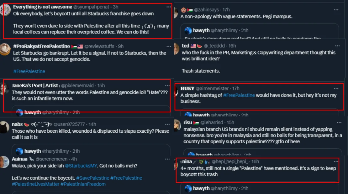 Since the comments section has been disabled on all social media platforms, netizens took to Twitter to express their disappointment in the brand. Many called out Starbucks for staying neutral on the ongoing issue and that they should’ve explicitly written the words “Genocide” and “Palestine” in their statement if they were to choose to win back their customers’ trust.