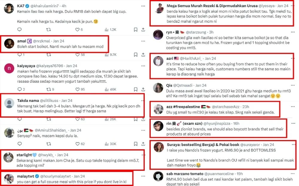 The tweet garnered the attention of other netizens, who were equally shocked at the prices. Many lamented that the frozen yoghurt is too expensive, saying they could easily buy a meal or two with the price of one portion of frozen yoghurt. Some also compared their current price to their previous, saying it was a lot more affordable as even the most expensive was less than RM15.