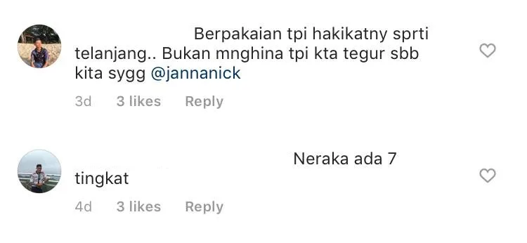 The comment section has been flooded with mixed reaction by her followers. While some praise her for her natural looks, while others – most of them were male – left sexually suggestive comments on the post. On top of that, one fan also pointed out that the picture reflected Janna’s bad image of a Muslim and prayed that she can change.