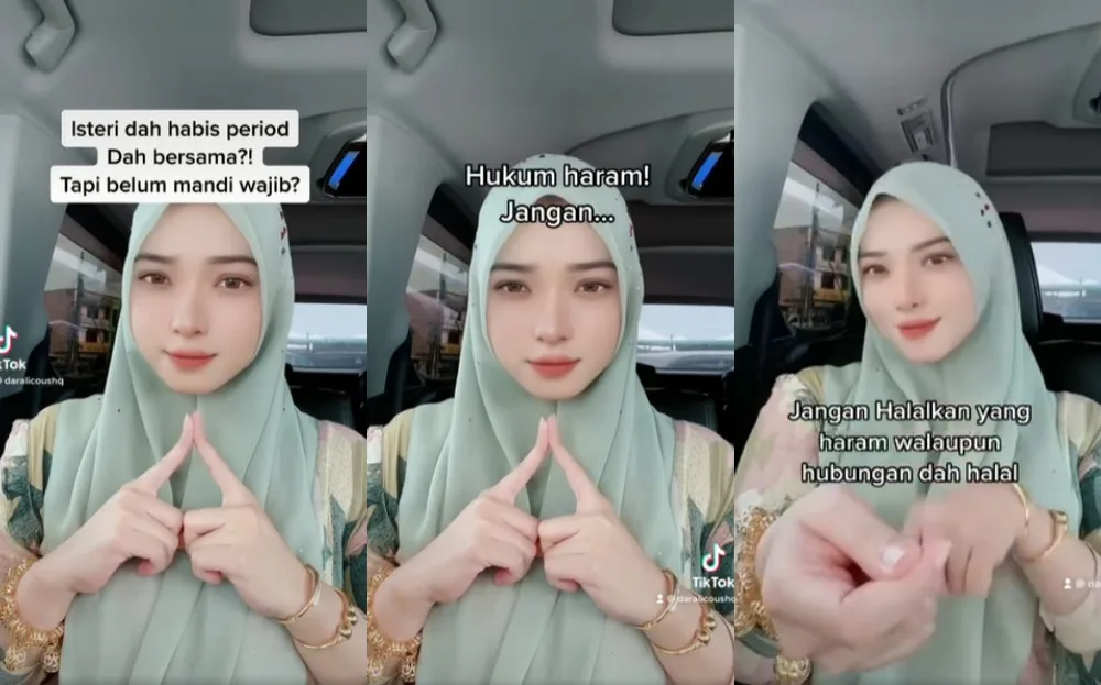The TikTok user used her video to address a religious matter she presumably felt strongly about. According to her, it is wrong for a wife to have sex with her husband if she hasn’t performed the necessary ablutions (mandi wajib) after her period. “(It’s) haram (forbidden),” she helpfully stated. “Don’t halalkan (make right) things that are haram, even though the relationship is halal (accepted).”