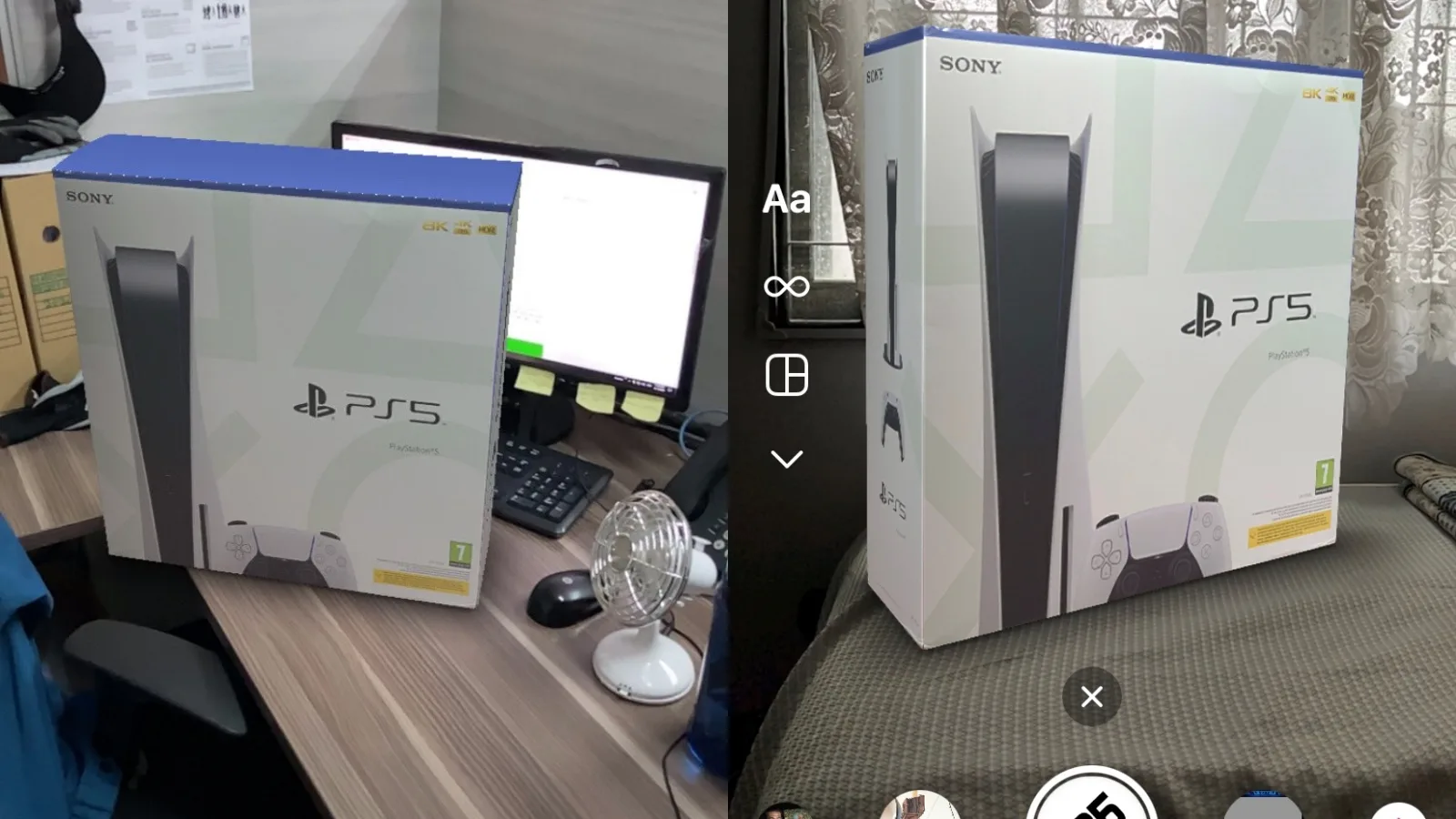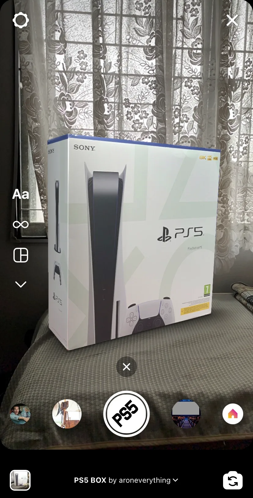 There is a new filter on Instagram called “PS5 BOX” (created by @aroneverything), which lets you place a realistic-looking PlayStation 5 (PS5) box anywhere on your screen.