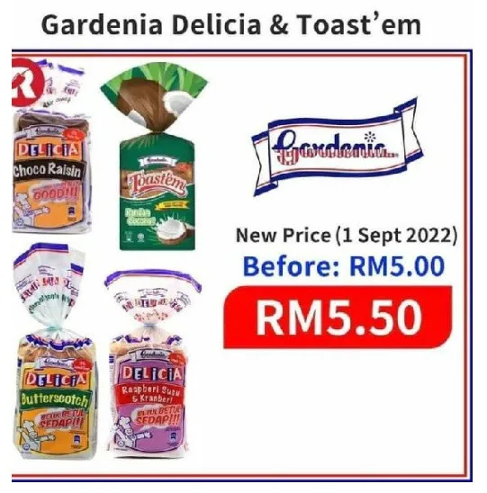 Unfortunately, as of 1st September, well-known bread brand Gardenia has officially increased its prices. We know tracking each price increase can be hard, so here’s a price guide of how much each one has increased by and how much it is now.