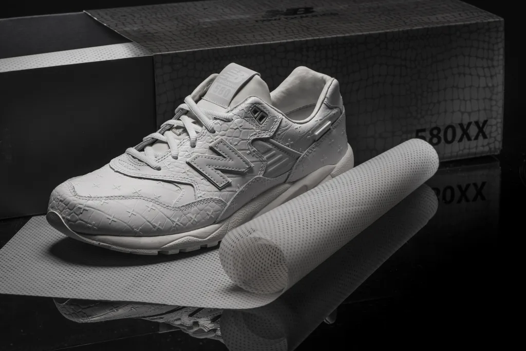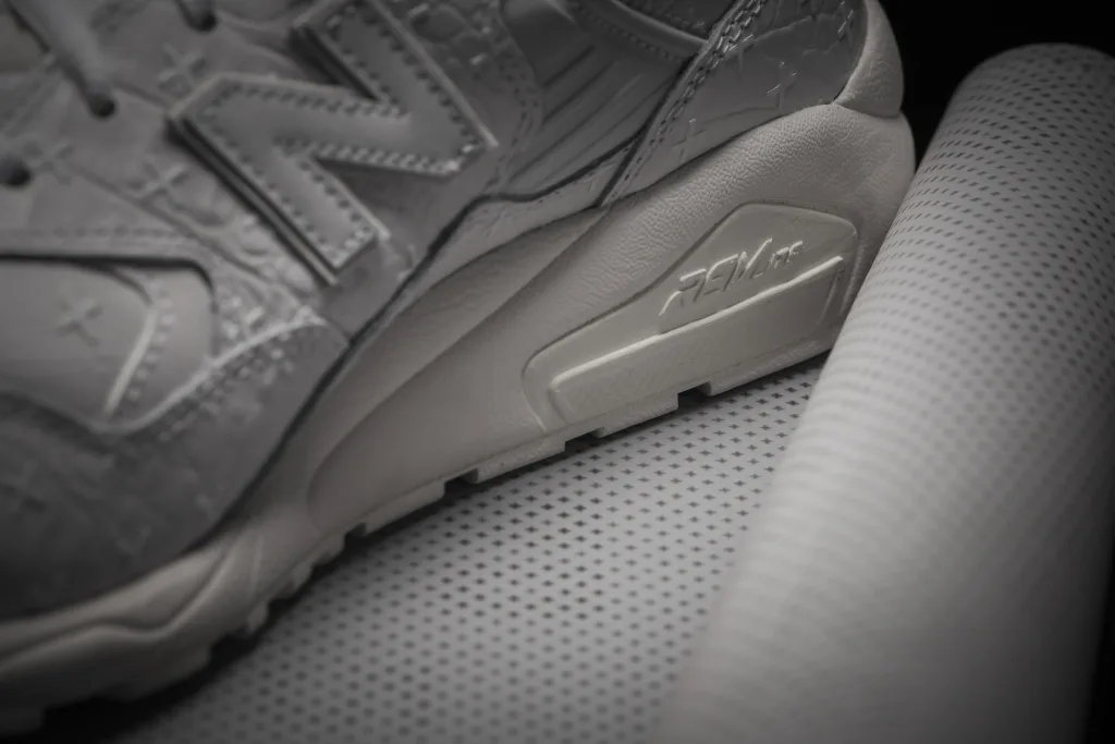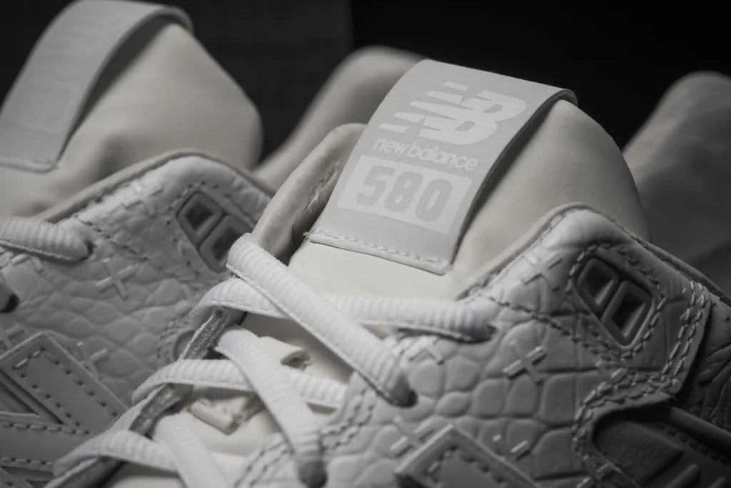 MRT580XX is intricately designed to achieve that casual but refined, classic yet contemporary look. White genuine leather with embossed crocodile skin-like finish is used on the sneakers, providing a hint of organic texture that refines the shoe’s minimalist white look. White straight lined crosses are evenly scattered throughout the shoe, establishing a contrast with the raw quality of the surface material. It also lends to an intriguingly coherent overall style. Inherited from the brand’s performance line, ultra reflective details are placed on the shoe tongue, the “N” logo and the white-cross patterning.