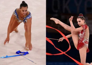 Israeli gymnast Linoy Ashram, who competed in the finals of the rhythmic gymnastics individual all-around event at the 2020 Tokyo...