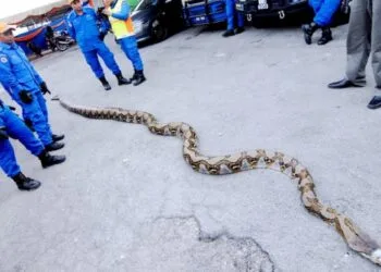 A giant python was found lying under a fallen tree at a construction area in Penang. Is this the world's longest snake?...
