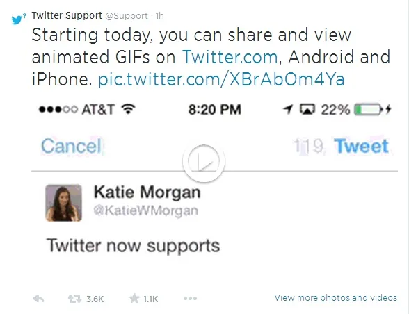 Twitter made a surprise announcement today as the social media app now supports animated GIFs on their site as well as on iOS and Android. The feature allows all the Twitter users to share and view GIFs on Twitter, just like how we can view other video-sharing sites by clicking a play button on top of them.