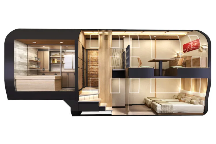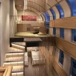 At $50 millon, the “Cruise Train” seats 34 people and will spare their riders no luxury. From the outside, the “Cruise Train” is a modern take on some of Japan’s more vintage lines. The interiors, however, look like rolling Park Venue apartments replete with full-length glass windows and ceilings, full baths, and split level sleeping accommodations.