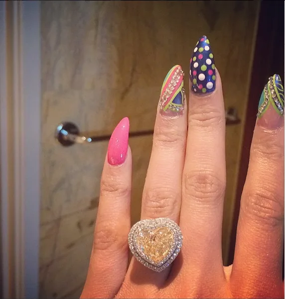 The “Anaconda” rapper kept her promise by delivering the post after few hours on Instagram and surprise, surprise, it was a picture of a 15-carat gigantic heart-shaped ring on her left hand’s ring finger!