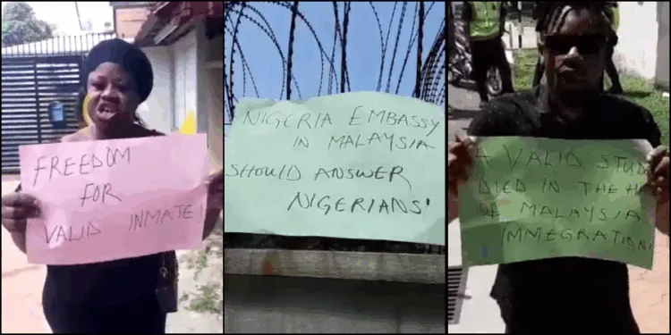 Nigerians have stepped out to protest at the embassy in Malaysia after a Nigerian business man who is taking his PhD in Malaysia died in a deportation camp after an unfair arrest.