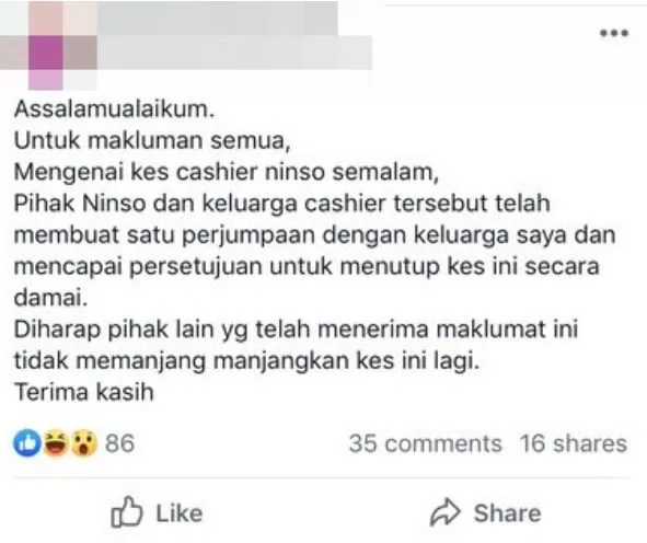 It seems that the case now has reached a settlement as of today. A day after the incident, the female customer posted on her Facebook. In the post, she revealed that a meeting between the two parties was successfully held, ultimately closing the case.