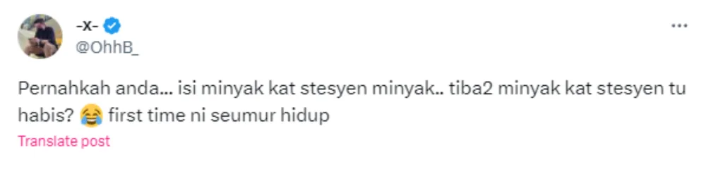 The conversation started when Twitter user @/OhhB_ wrote, “Have you ever started filling up at a petrol station when the petrol suddenly ran out? It happened to me for the first time in my life.” The Twitter user wasn’t the only one with that unexpected experience because many other Malaysians have also been through the same situation.