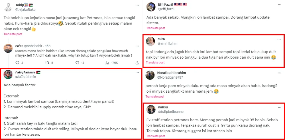 If you’re wondering how people could end up in this situation, some netizens did share a few reasons. One reason was that the fuel tank lorries were either late or stuck in traffic. A former Petronas employee said they once ran out of RON95 because the tank lorry was late and added that the employees could only offer RON97 to customers because of it.
