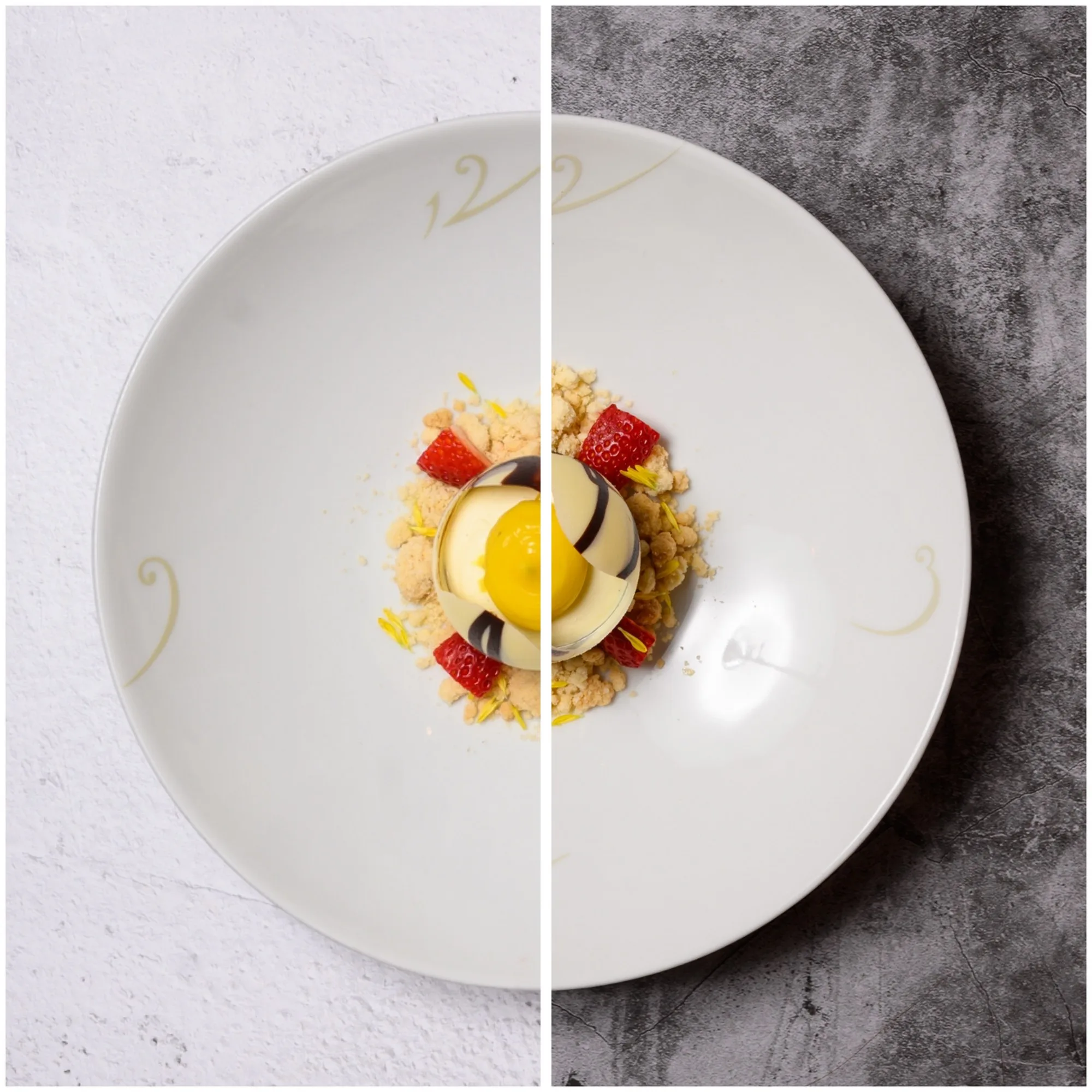 - End your meal on a sweet note with the dessert made from white chocolate dome, yogurt mousse and orange curd with matcha chocolate sauce.