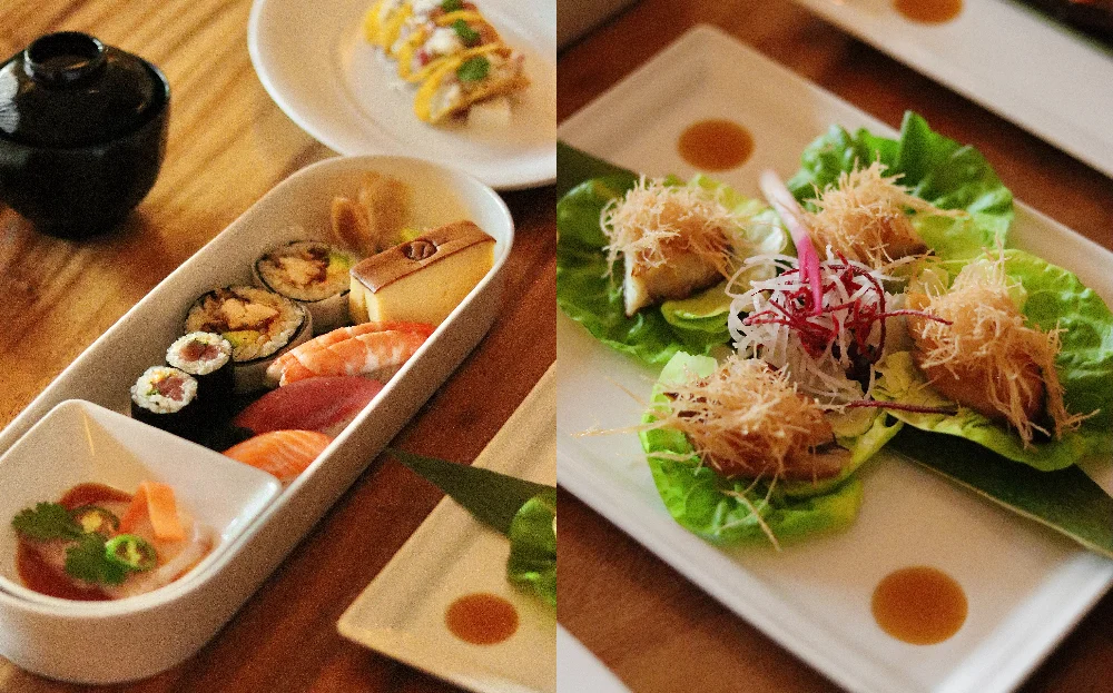 Guests may then choose between a Sushi Bento or Vegetable Bento. The Sushi Bento features Yellowtail Jalapeño, Sushi Selections, Soft-Shell Crab Cut Roll, and Spicy Tuna Cut Roll, while the Vegetable Bento presents Watercress Salad, Vegetable Sushi Selections, Asparagus Dry Miso Cut Roll, and a Vegetable Cut Roll.