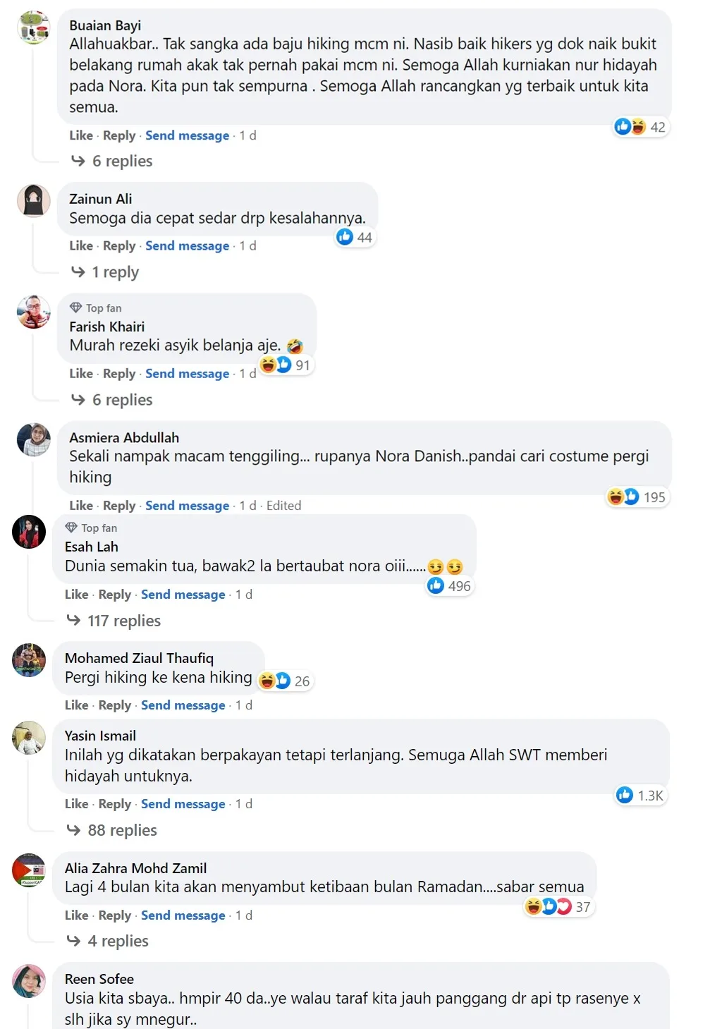 “My first, definitely not my last. So where should I go next?” Nora (full name Nora Muhammad Danish Hanif) captioned her post. The comments section was flooded with tons of reactions left by social media users, who were mostly against the “Puteri” actress’ choice of clothing.