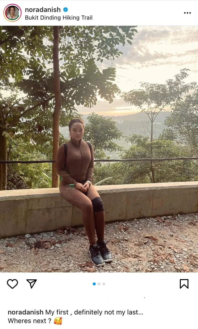 A couple of days ago, Nora Danish uploaded a photo of herself on a hiking trip to Bukit Dinding, KL. That being said, a lot of nitpickers were more focused on her “tight” hiking outfit.