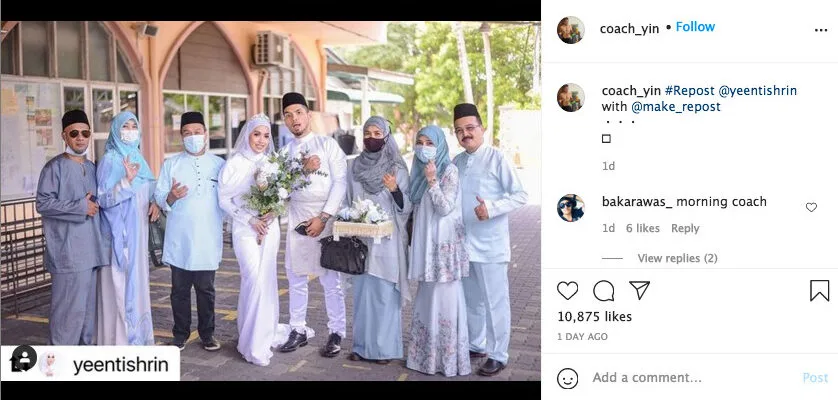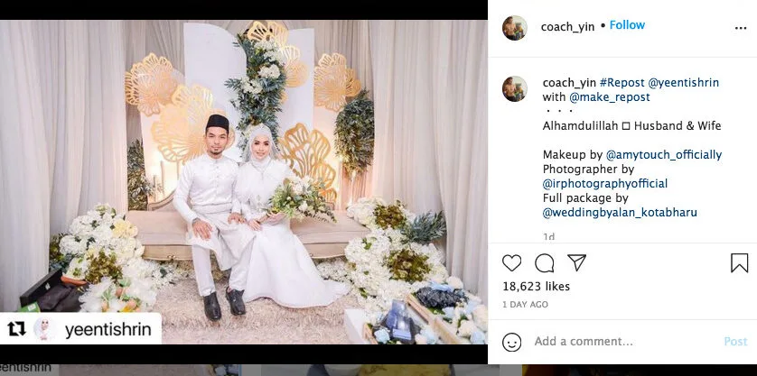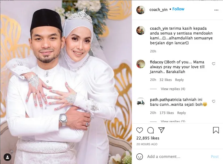 Many netizens flooded the comments section with positive remarks and also congratulatory wishes for the lovely couple. Apart from that, others also expressed their gratitude over the fact that Coach Yin had chosen a “real woman” as his wife. “Alhamdulillah, congrats! Finally, he met someone ‘original’. May you be happy till the end of time,” one commentator quipped.