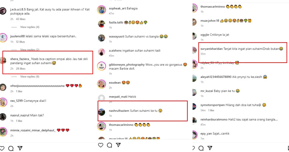 Surprisingly, this time, netizens did not suspect that Sajat had a new boyfriend. However, they compared her friend Hairul in the Instagram post to Malaysian singer-songwriter Sufian Suhaimi, noting their resemblance. After looking at the comparisons ourselves, we can see why netizens think they look alike.