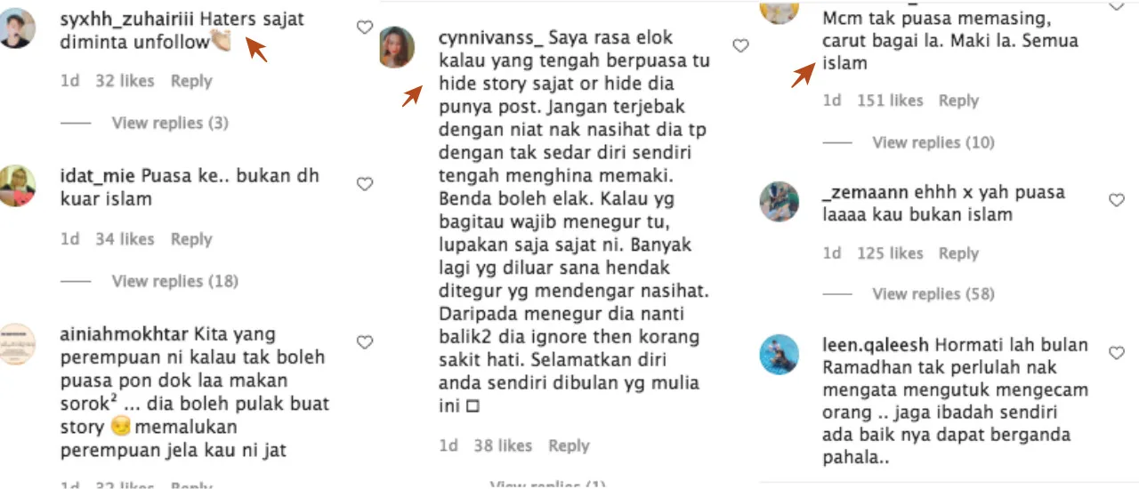 On the other hand, there were also some who suggested for fellow IG users to either mute Sajat’s account or to stop following her on social media. As suggested, there’s no point in bashing and criticising the entrepreneur as most of their remarks would be ignored by her. In fact, it will only reduce their rewards for fasting.