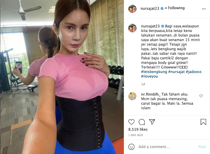 Prior to this, the 35-year-old received a massive amount of backlash from local netizens after she shared a Reels video of herself exercising. In this case, most of them argued that the queer personality didn’t respect the fasting month due to her suggestive choice of outfit.