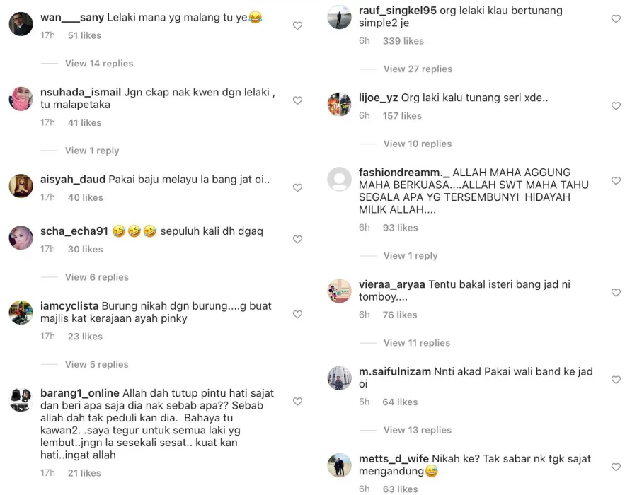 As expected, the post was met with immense backlash from netizens. In this case, some argued that the shoot was merely a publicity stint in promoting her business. Apart from that, some also left degrading remarks, poking fun at her sexuality. As pointed out by @nsuhada_ismail, things will turn disastrous if Sajat ended up tying the knot with a guy.