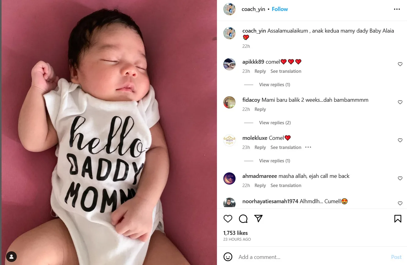 Through a post on his IG, Coach Yin revealed the face of his second child for the first time to the public. “Peace be upon you, Mummy and Daddy’s second born, Baby Alaia,” he wrote in the caption. Scrolling through the replies, many congratulated the couple on the arrival of their new baby.
