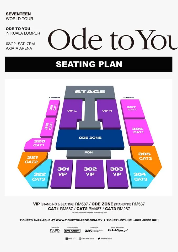 The details to SEVENTEEN’s “Ode To You” Live in Kuala Lumpur are as follows: