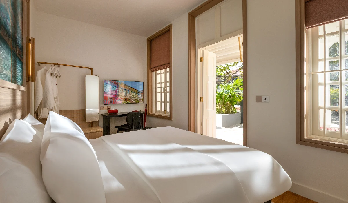 For those seeking a more lavish space, the Straits Suite provides a truly expansive stay, with a separate bedroom, living area and study. Subtle details – from plush bedding to premium bath essentials – enhance the experience, allowing guests to unwind in comfort or step out refreshed to explore the surrounding neighbourhood.