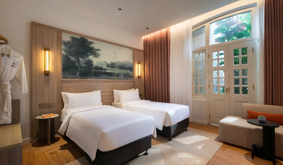For a more intimate, nature-connected stay, the 52 sqm Heritage Garden Patio Room, located on the ground floor, features a private outdoor patio and garden. With easy access to the pool area and a tranquil, greenery-lined setting, it is ideal for guests seeking a restful retreat with a closer connection to their surroundings.
