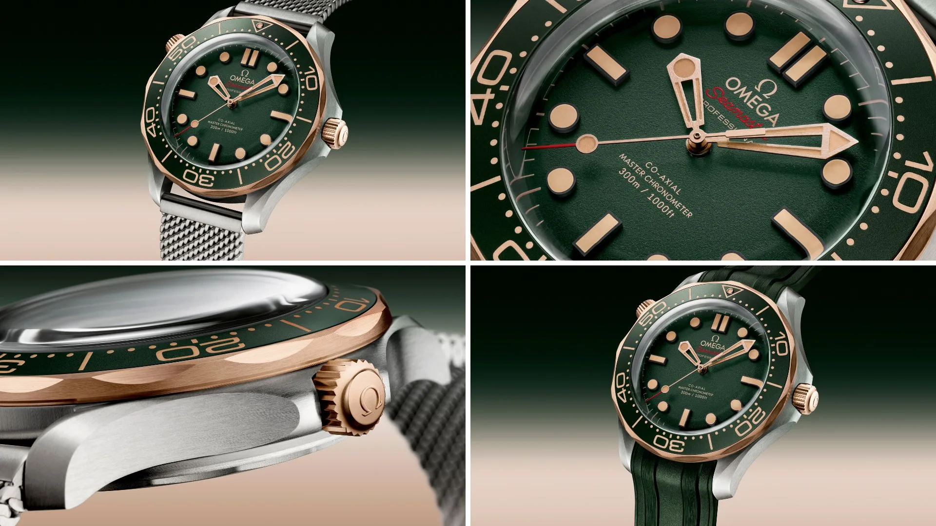 OMEGA’s latest Seamaster Diver 300M edition in Grade 2 Titanium and Bronze Gold takes the collection to new heights with a nod to the iconic 007 Edition. This 42mm timepiece features a vintage-inspired design with a domed sapphire crystal and a striking green aluminium dial, paired with the signature mesh bracelet seen in “No Time To Die.” Crafted from Grade 2 Titanium, known for its lightweight durability and corrosion resistance, this watch is ideal for those with an adventurous spirit. Whether you’re diving into the deep blue or making a stylish statement, this Seamaster offers a refined yet rugged choice.