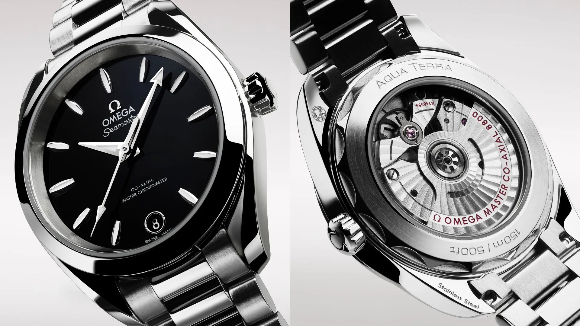 For this new stainless steel range, the focus is on the black varnished dials. A choice that is appropriate for all occasions, from the boardroom to vacation getaways. The lacquered finish creates a sleek appearance unlike any other Aqua Terra and guarantees an eye catching look at all hours of the day.