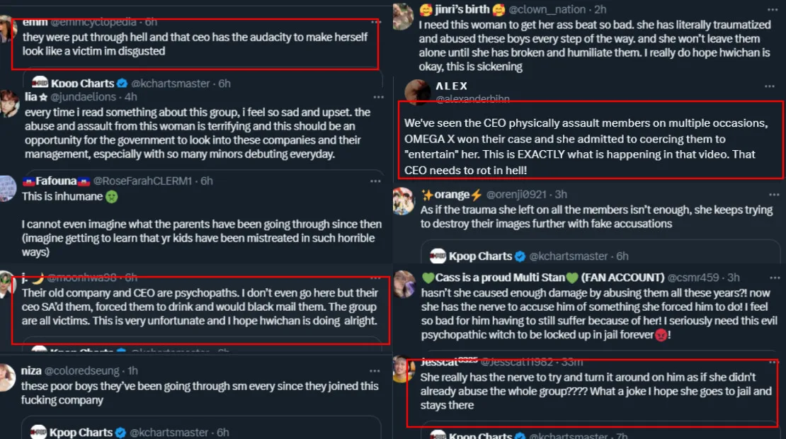 As seen in the screenshots above, fans were shocked after the statement was released. Many came to the idol’s defence saying that the ex-CEO’s actions were calculated in order to make herself appear as the victim while others brought up the previous cases of OMEGA X being physically, verbally, and mentally abused by their former employer. You can read the full statement by clicking here.