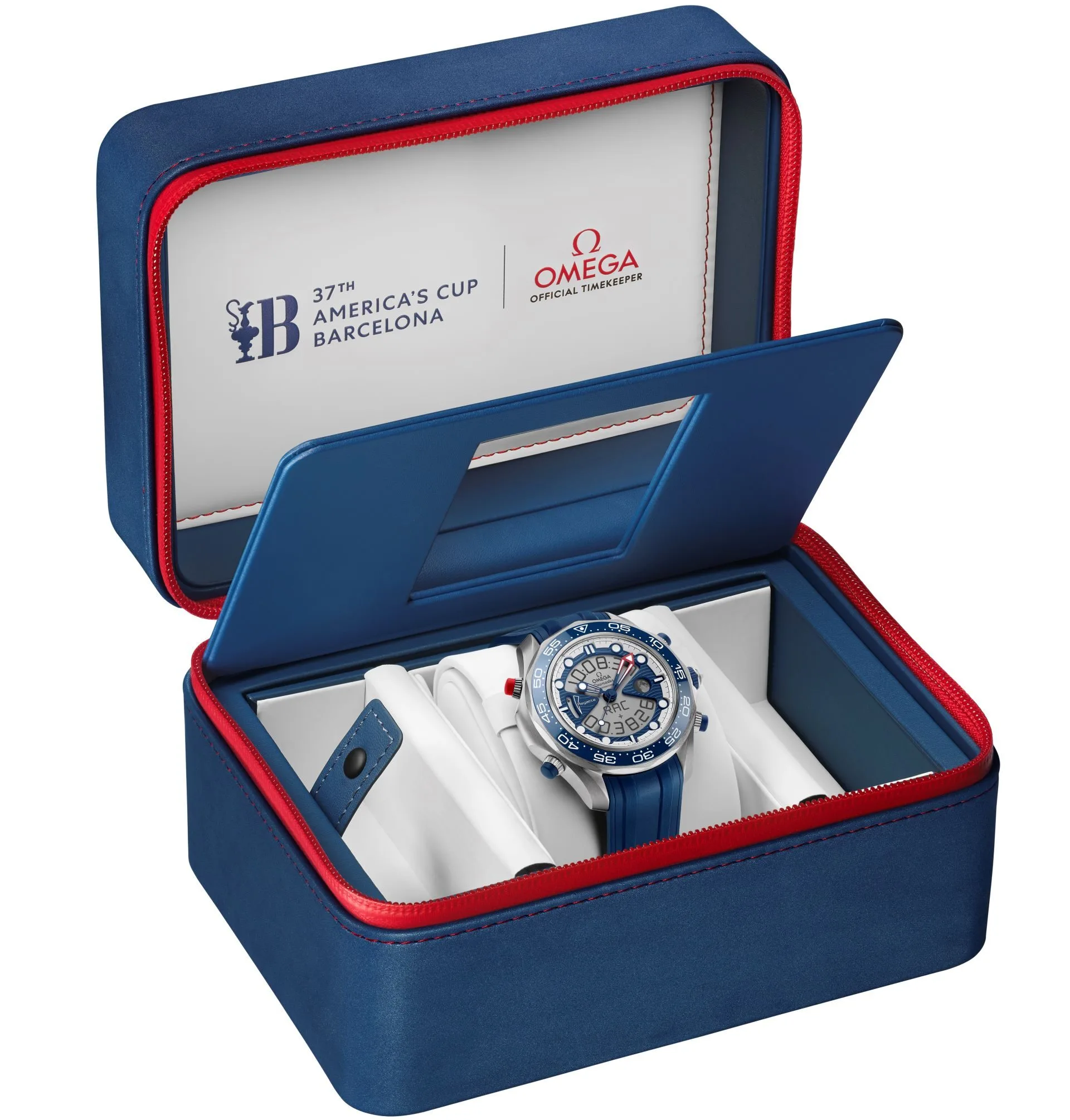 This raised back is embossed with the distinctive 37th America’s Cup logo and engraved with the words SEAMASTER REGATTA and 37th AMERICA’S CUP. Also engraved is the name of the watch’s brand-new multifunctional quartz movement: OMEGA’s CALIBRE 5701.