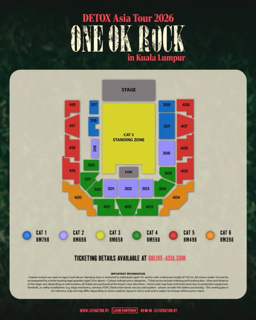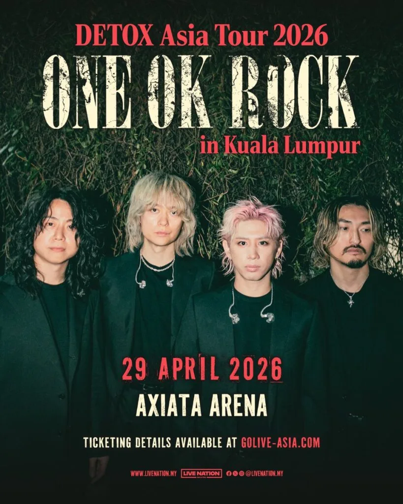 ONE OK ROCK recently announced the dates for their DETOX Asia Tour, starting in February 2026. The band is performing in several cities, including Bangkok, Manila, Singapore and Kuala Lumpur. Their show in KL will take place on 29th April 2026 (Wednesday) at Axiata Arena. More information about the concert will be available soon.