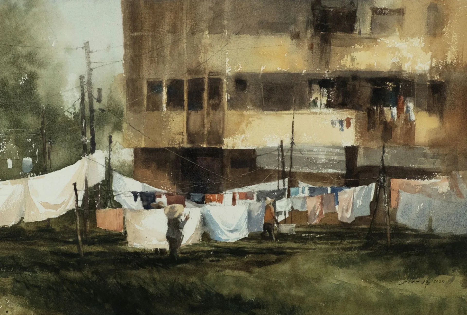 Hailing from Taiping, Jian Yang began painting at eight after learning watercolour from artist Liau Sin Fah. His background in architecture sharpened his eye for structure and balance, which define his work today. “Every subject matter can excel if the composition is meticulously crafted. Composition is king!” he says. Through “Somewhere, Quietly,” he hopes viewers will pause and find calm in a world that seldom slows down.