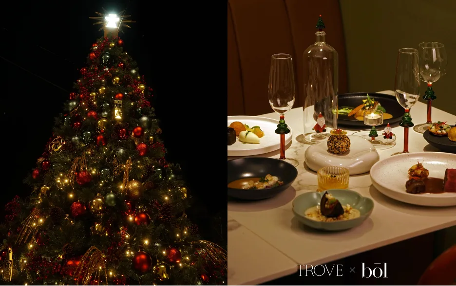 Amidst the bustling energy of Kuala Lumpur, a magnificent 15-foot Christmas tree stands resplendent, adorned with TROVE’s signature ornamental icons—gleaming in gold and telling a story of cherished moments. In a harmonious blend of unique styles, TROVE and bōl unite to offer a Christmas experience served on plates of refined comfort, all wrapped in enchanting décor.