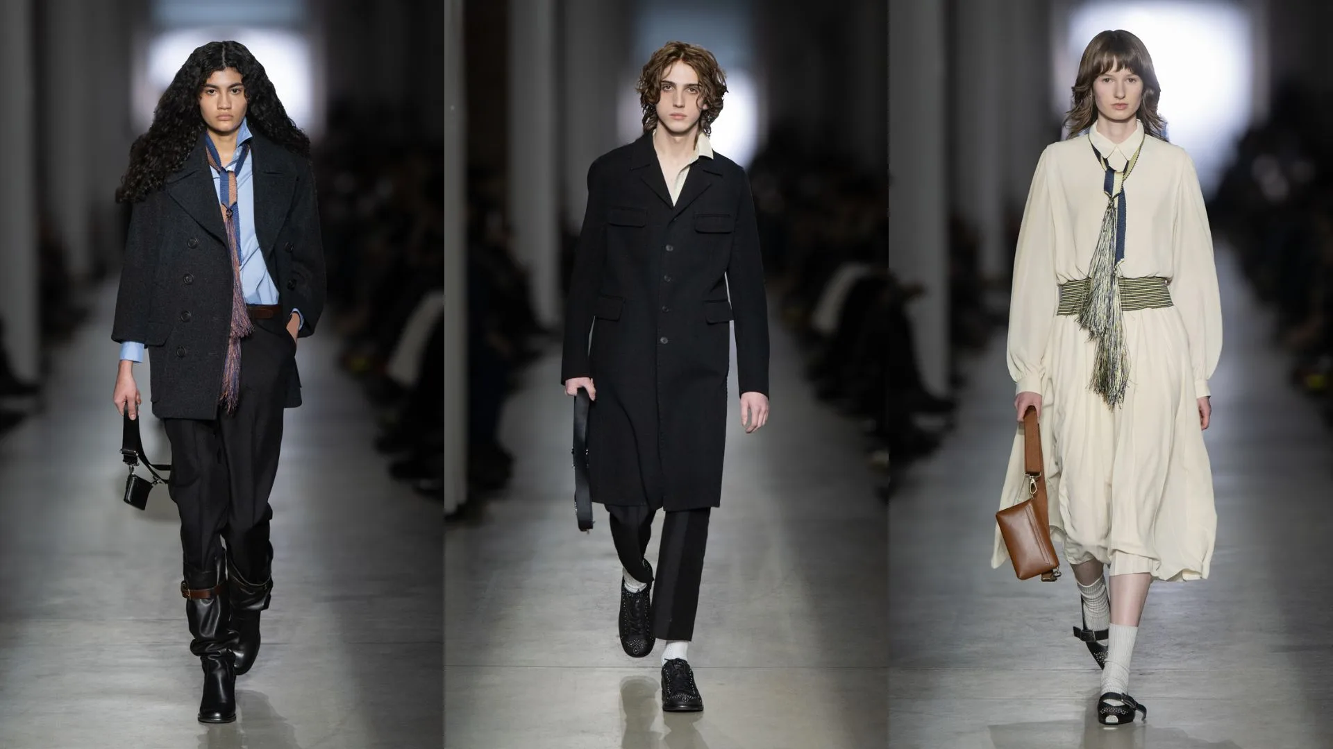 The looks of the collection are composed of fusing diverse styles; from the contemporary Brit-country look to western-inspired details, and punk studded accents to romantic flourishes. The slimmed silhouette draws a new aesthetic.