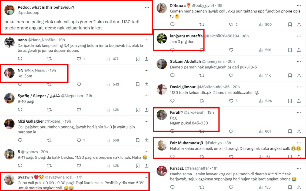 A Twitter user recently asked netizens the best time to call the office of a government agency because no one had answered the phone when he called around 11:30am. Some netizens shared their opinion of the best time to contact a government agency but the question also prompted many government office employees to share the schedule of an average employee so everyone can determine the best time to call.
