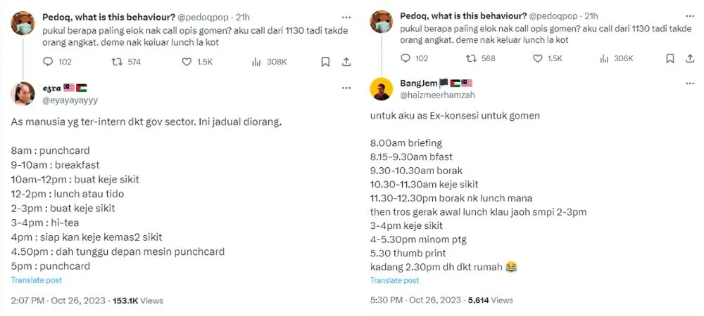 The “schedules” left many netizens amused and saying they would like a job in the government sector because of how lax the work seems. Other government employees vouched for the schedule and added funny anecdotes from their experiences, like one former intern who said she once followed her supervisor on a shopping trip during work hours.