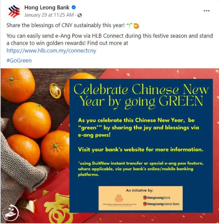 Through their Facebook page, Hong Leong Bank has also shared that they will be issuing new notes through their ATMs for Chinese New Year – but are also encouraging customers to give out e-ang pau instead. In a Facebook post, the bank advertised the e-ang pau feature in their HLB Connect app, calling it a greener alternative to distributing ang pau as e-ang pau is considered more environmentally friendly.